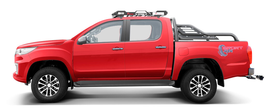 Thanks to the darkened B-pillar, the mirrors and handles in gray and the 18″ two-tone wheels, the aesthetic is much more refined and updated. In the back we find a tailgate with a plastic molding (we saw it with Maxus too, another reference to “Ford”) where the name “Foton” reads big.